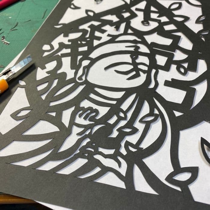 切り絵はお家にある道具で気軽に始められますし、台紙をカラフルにすればステンドグラスのような美しさも出せます。切るのが苦手な人はプリントアウトして白い部分を塗り絵して楽しむことも出来ます。