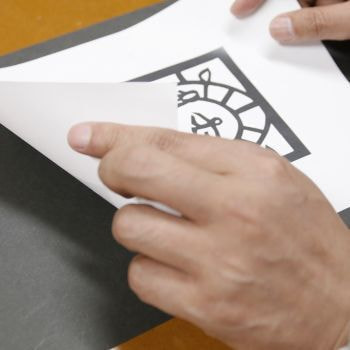 ②黒紙に原画をクリップで固定します。合掌して心を鎮めます。(ここからの画像は「お薬師さま」と図柄と異なります)